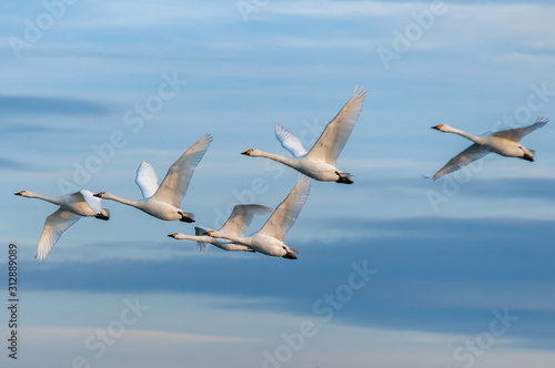 © ikeda_a, Obraz premium 空を飛ぶハクチョウの群れ
