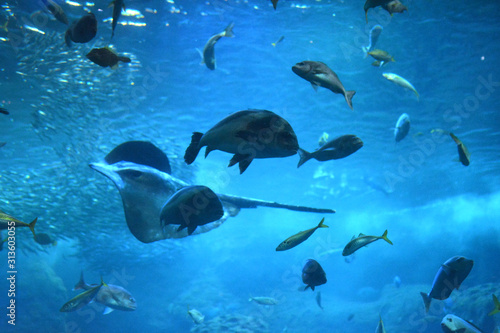 © satou y1, Fototapeta premium 水中を滑るように泳ぐアカエイの力強い姿