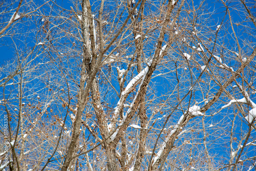 Obraz premium 積雪した木々と青空