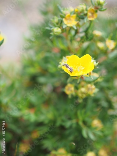 Obraz premium キンシバイの蜜を吸いにきた蜂