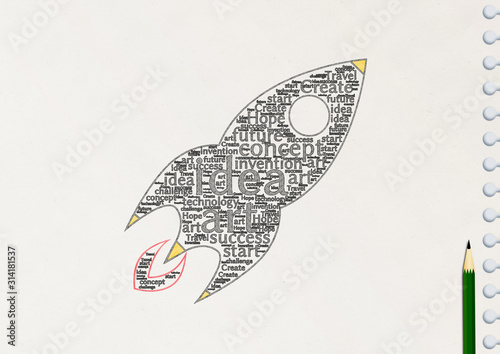 © k_yu, Fototapeta premium メッセージを詰め込んだ抽象的なロケット