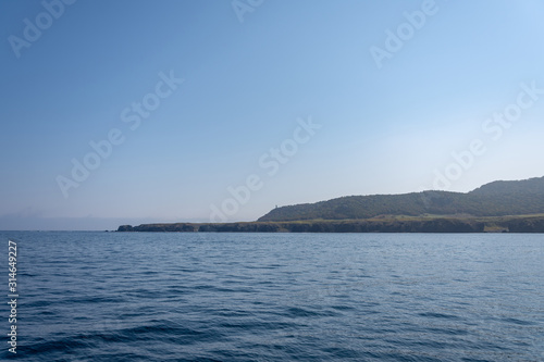 Naklejka premium 知床クルーズの船上から見える知床半島先端の知床岬