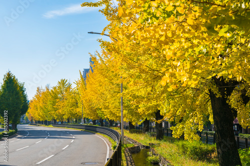 Obraz premium 京都 堀川通の銀杏並木