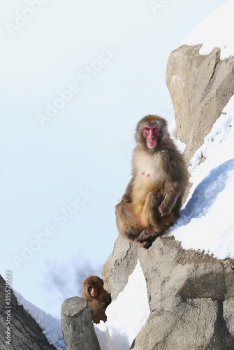 Obraz premium 雪上のニホンザル