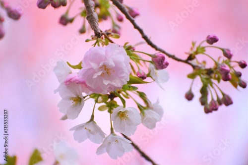 © masaandsaya, Obraz premium 桜の枝先に咲く桜の花のクローズアップです