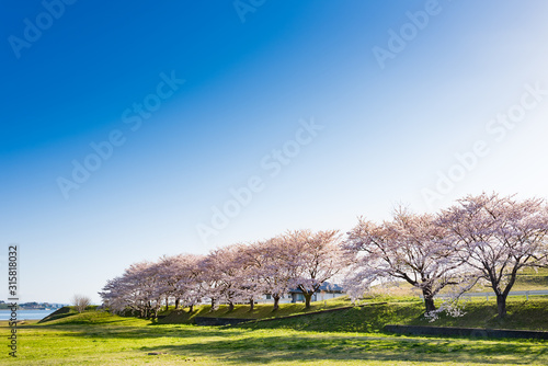 Fototapeta premium 長沼フートピア公園満開の桜並木