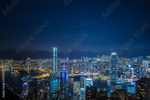 © kanzilyou, Fototapeta premium ヴィクトリアピークから見える香港の夜景