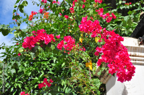 © 暇人, Obraz premium ブーゲンビリアと白い壁