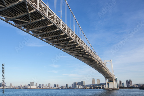 Obraz premium 青空を背景にレインボーブリッジを下から見た景色