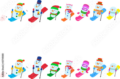 Obraz premium 雪だるまスキーフレーム 上下
