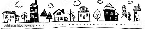 Obraz premium 街並み 風景 線画 素材 イラスト ベクター
