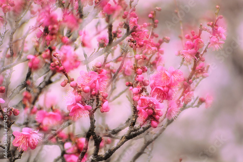 Obraz premium 早春の梅の花が満開 - 多重露出