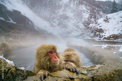 Obraz premium スノーモンキー 温泉に入るニホンサル