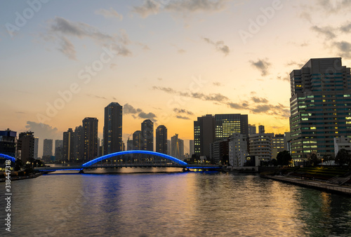 © EISAKU SHIRAYAMA, Fototapeta premium 2020年1月 工事の完了した隅田川に架かる永代橋のライトアップ