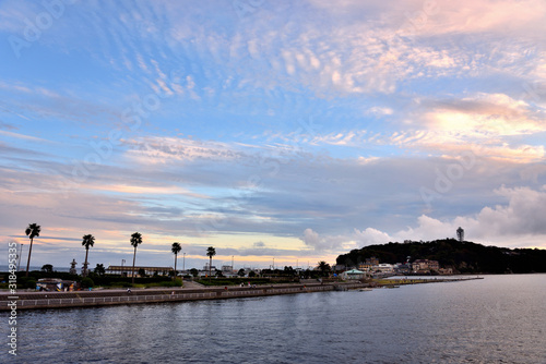 Fototapeta premium 夕陽に染まる片瀬江の島