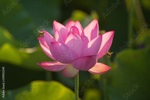 Obraz premium 蓮の花に寄せられる蜜蜂