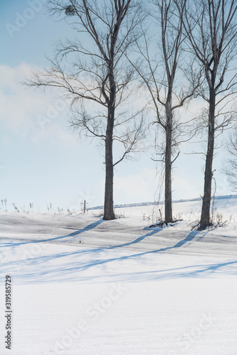 © kinpouge, Obraz premium 融雪剤が撒かれた雪の畑と冬木立