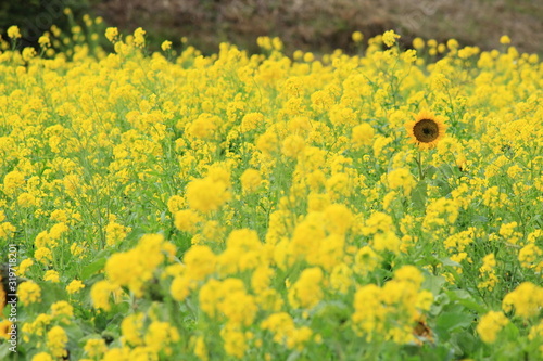 Fototapeta premium 南伊豆町日野 菜の花畑に咲くひまわり