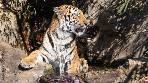 Obraz premium 水浴びするトラ