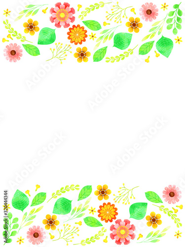 © konohana, Obraz premium カラフルな花と緑のイラスト背景