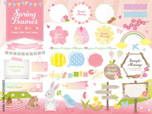 Fototapeta premium 春 フレーム イラスト ベクター 木目 看板 素材 セット