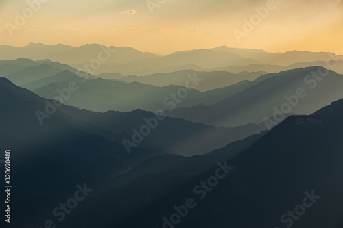 © Yusuke Kawakami, Fototapeta premium 山に差す光芒