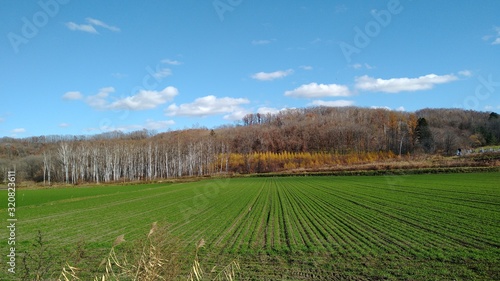 © 小出 桜, Fototapeta premium 十勝の秋空と小麦畑