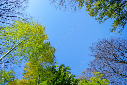 © travel, Obraz premium 爽やかな青空と新緑の葉っぱ