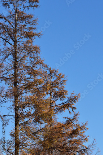 Obraz premium 晩秋の紅葉したカラマツ