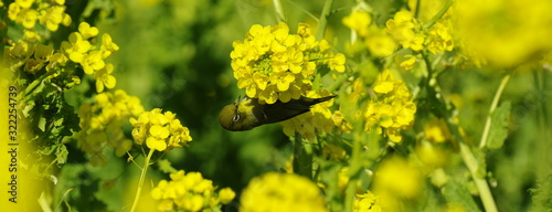 © rai, Fototapeta premium 菜の花にとまる野鳥