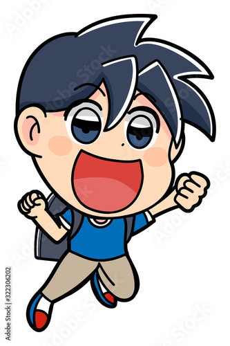 Obraz premium かわいい イラスト 小学校 小学生 男の子 ランドセル
