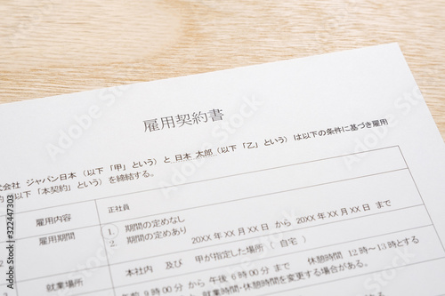 Fototapeta premium 【写真素材】雇用契約書 労働条件 就職 転職 サイン 押印