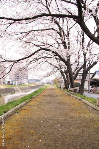 © おかゆ 桜, Obraz premium 青春の桜並木 入学式の帰り道