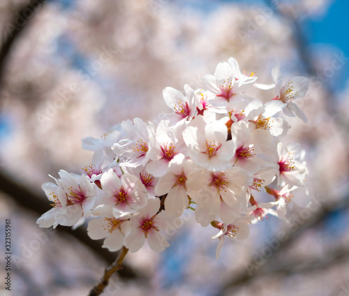 Obraz premium 満開の日本の桜の花(ソメイヨシノ)クローズアップ写真