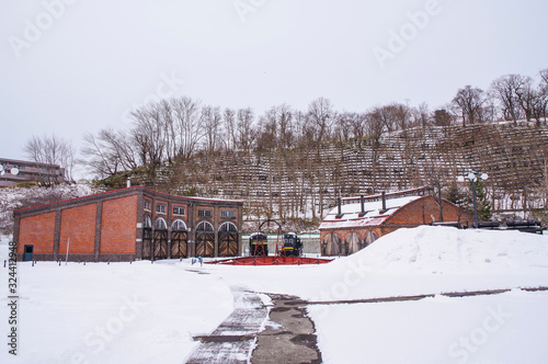 Fototapeta premium 保存されている転車台とレンガ車庫