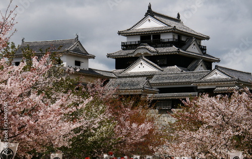© RITSU MIYAMOTO, Fototapeta premium 松山城と桜と青空