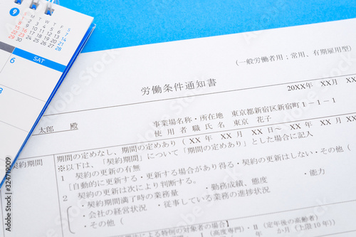 Obraz premium 労働条件通知書 ビジネスシーン 就職 転職 雇用 採用