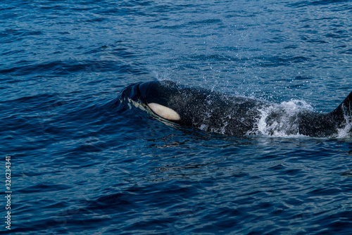 Obraz premium 北海道 羅臼の海を泳ぐシャチ