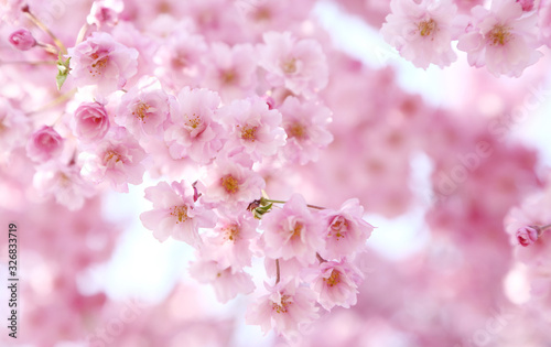 Fototapeta premium 喜多方 日中線 ベニシダレザクラ