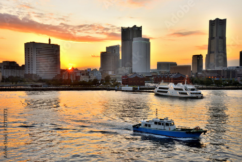 © masyok, Fototapeta premium 大桟橋から夕方のみなとみらいを眺める人々
