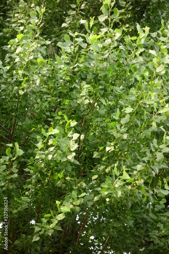 Obraz premium 沼部の藪、青々と鬱蒼と茂る繁みと木の葉