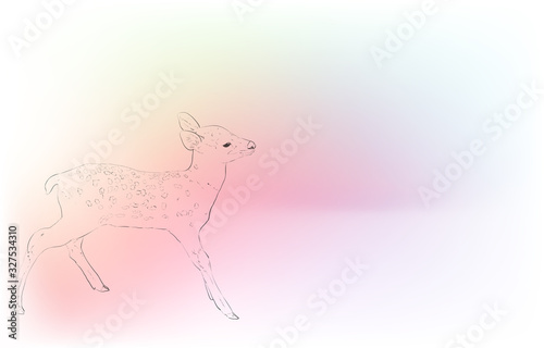 Obraz premium 写実的な動物イラスト:玉虫色の背景:小鹿の横姿