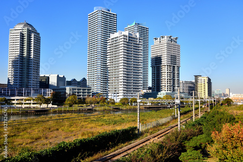 Fototapeta premium 青空と高島水際線貨物線路