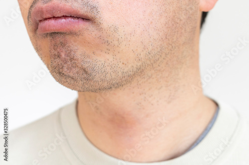 © poko42, Obraz premium 無精ひげの男の口元