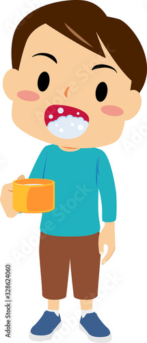 © Takamaru, Fototapeta premium うがいをする男の子のイラスト