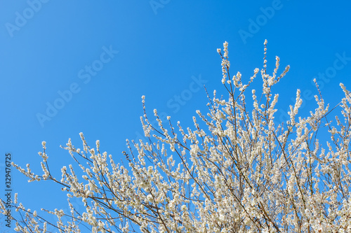 © Rummy & Rummy, Obraz premium 【写真素材】白梅の花と青空 広角 コピースペース