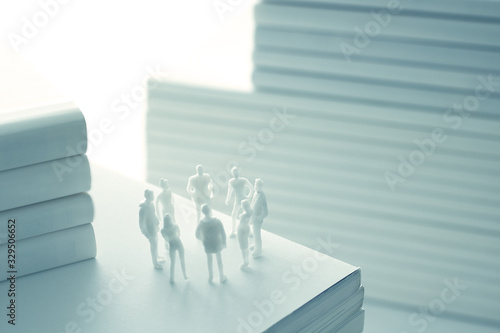 Obraz premium 積み重ねた白い本と人間