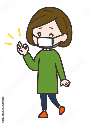 Obraz premium マスクを着用する女性 ポーズ イラスト