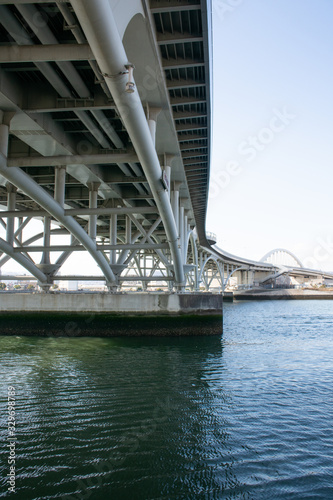 Fototapeta premium 広島県の川沿いの風景 橋の下