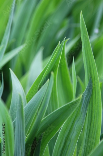 © Sea Wave, Fototapeta premium Зелень ирисов на клумбе весной